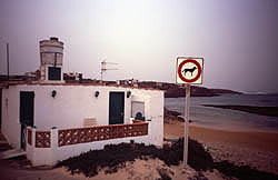 At the end of the former piste and now paved road from Lajares there´s a large bay that is protected from the open ocean swells. A lot of locals used this rare calm shores to build shacks and little houses which summed up to a little village. It has sort of a ghost town character and the buildings are not built legal, I presume. Anyhow, the place has it´s beauty and, very sad, will be history soon, as there are plans for a large tourist resort here. In the close vicinity hundreds of appartements are allready under construction and the calm bay will become a yachting harbour. It seems, like another perfect place will be destroyed by the ruthless canarian tourist industrie.