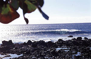 The reef just in front of the little headland at the main plaza offers a very nice right and a short but sweet left when the swell is big enough. The only downside is, that the waves break VERY close to the rocky shore. Especially in smaller swells, You really have to knwo what You´re doing if You don´t wand to get a first class pealing on the nasty lava rocks.