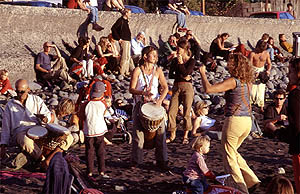 Every evening an astonishing large number of hippies overtakes the beach and starts a never really changing happening. The typical instruments are played, jugglers show their tricks and 3 generations of hippies do what they have to do. They came to this place about 3 decades ago and live their live since.