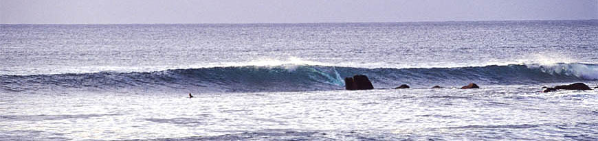 The point is just north of the reef. It offers a long and punchy right that regurarely has tubes. Be carefull as the waves usually are much heavier than they look from shore. Time Your paddling out good, as the odd clean up set might try to slam You into those lava rocks.