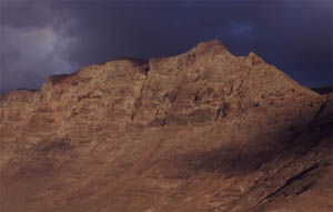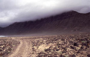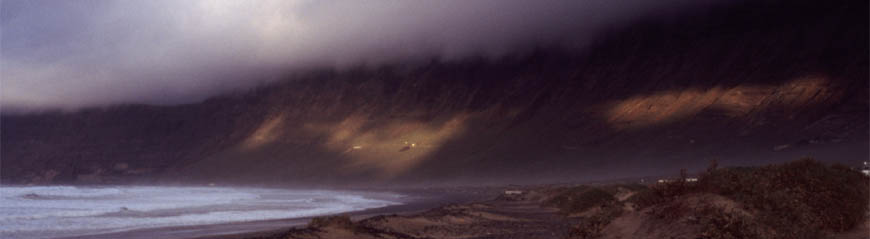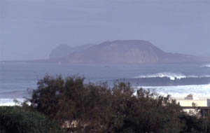 The mountain range Risco de Famara is the spectacular background of that large stretch of beach which runs from La Caleta to the ancient salines at the base of the Mirador del Rio in the northwestern edge of Lanzarote. The Risco de Famara and the island Graciosa very much look like the remnants of a very larce crater that got blown into pieces ages ago.