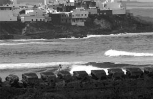 surfing: west of the channel breaks a left which is better with bigger waves. On low tide it´s very shallow and more of a bodyboarder wave. East of the channel, in front of the braking walls of the plantage is a nice reef that gives good rights and nice lefts. Waves have some juice here when north atlantic swells meet canarian reefs. So even when this place is one of the less heavy spots at the north coast, You still should have some experience when You go out here.