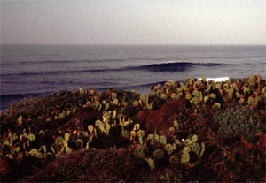 The coast in this area is all fairly young and therefore fairly sharp lava. Access to the water is a real hazard along this coast so You´ll be happy to find out, that there is some sand and round stones covering the lava at this town. To make it even more comfortable entering the water there is a nice channel that provides a fairly long but dry head paddle to the outside reefs.
