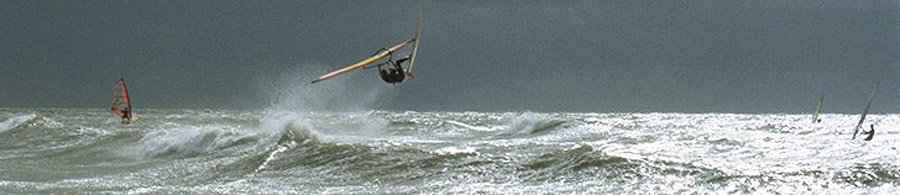Predominantly westerly winds with quickly passing depressions bring easy wave sailing conditions. West to west-northwest deliver sideshore wavesailing conditions. Winds with a lot of south in the direction come onshore and are very difficult to sail because of the jetties. East-southeast comes sidehore from the left and offers flatwater to bump n´jump conditions