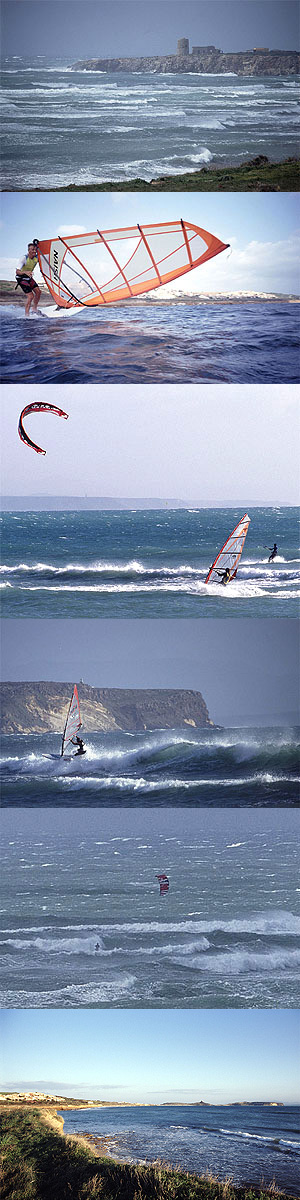 kiteboarding: it is very tricky to start and land the kites at the cliff drops with the almost nonexistant beach at sea level. You´ll definitely need to be able to control your kite very well and need someone to help you. If you´re fit enough you´ll have a lot of fun here, especially at the break to the left where windsurfers struggle with gusty winds on their sail level but kites still catch enough power. Brind a board made to surf and enjoy some nice down the line rides.