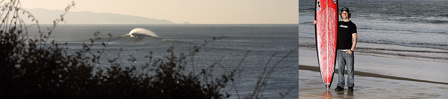 Axi: The problem with both is the lack of speed necessary to get into a mass of rapidly moving water. A problem that we solve by using the jet ski. But despite that the risc allways stays. The difference between large waves and slabs is that large waves come at a much bigger speed than smaller ones. Itīs a huge mass of water moving fast and to catch one of these waves you often need the help of jet skies. Slabs on the other side move at a speed proportional to their size and period (less than the one of large waves). But they jack up so rapidly when they abruptly hit shallow rocky ground, sucking up so much water from the base of the wave and leaving the surfer who catches them no chance of getting down to the base of the wave.