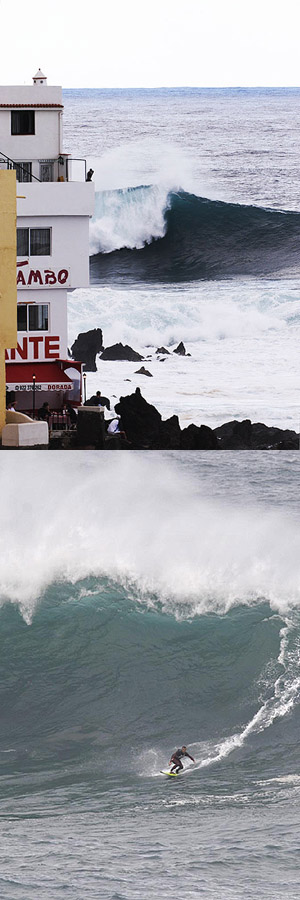 The organizers of the SantaTow-inBig Session want to thank all the people who were here, following and supporting us all day to enjoy a good session of tow in. We also want to thank the ministry of sports of Puerto de la Cruz, for their great support to that new initiative (which was not easy to understand), to the crew of the hotel Sol for their warm welcoming and cooperation, to the restaurant Costa Norte for that splendid dinner, to Paul and Duncan and especially to the local surfers who gave everything and more to make this happen. Muchas gracias a todos!