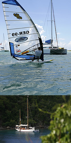 Ambition faded away and was displaced by pure astonishment at the arrival at The Baths, a beach on Virgin Gorda, straight from a postcard with pure Caribbean feeling. For us it was only a splendid background for a delicious lunch under the shady palm trees before starting the 2nd windsurf race, a splendid downwinder to Trellis Bay.