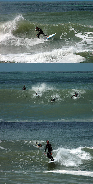 At the sandbar most of the waves closed out but once in a while a set with rideable waves came through, still pretty hollow though and chased by a wave hungry pack.